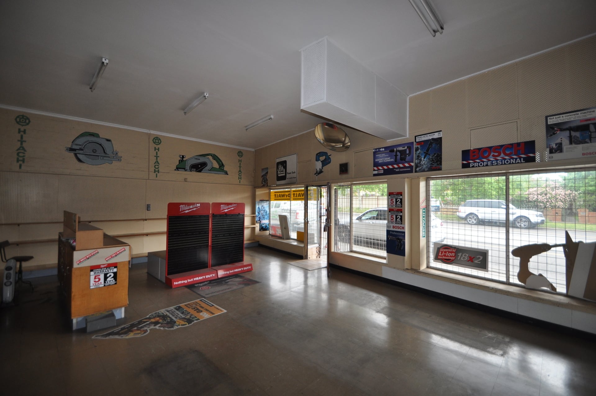Superb double fronted shop front with large open warehouse with high ceilings and timber floors.
