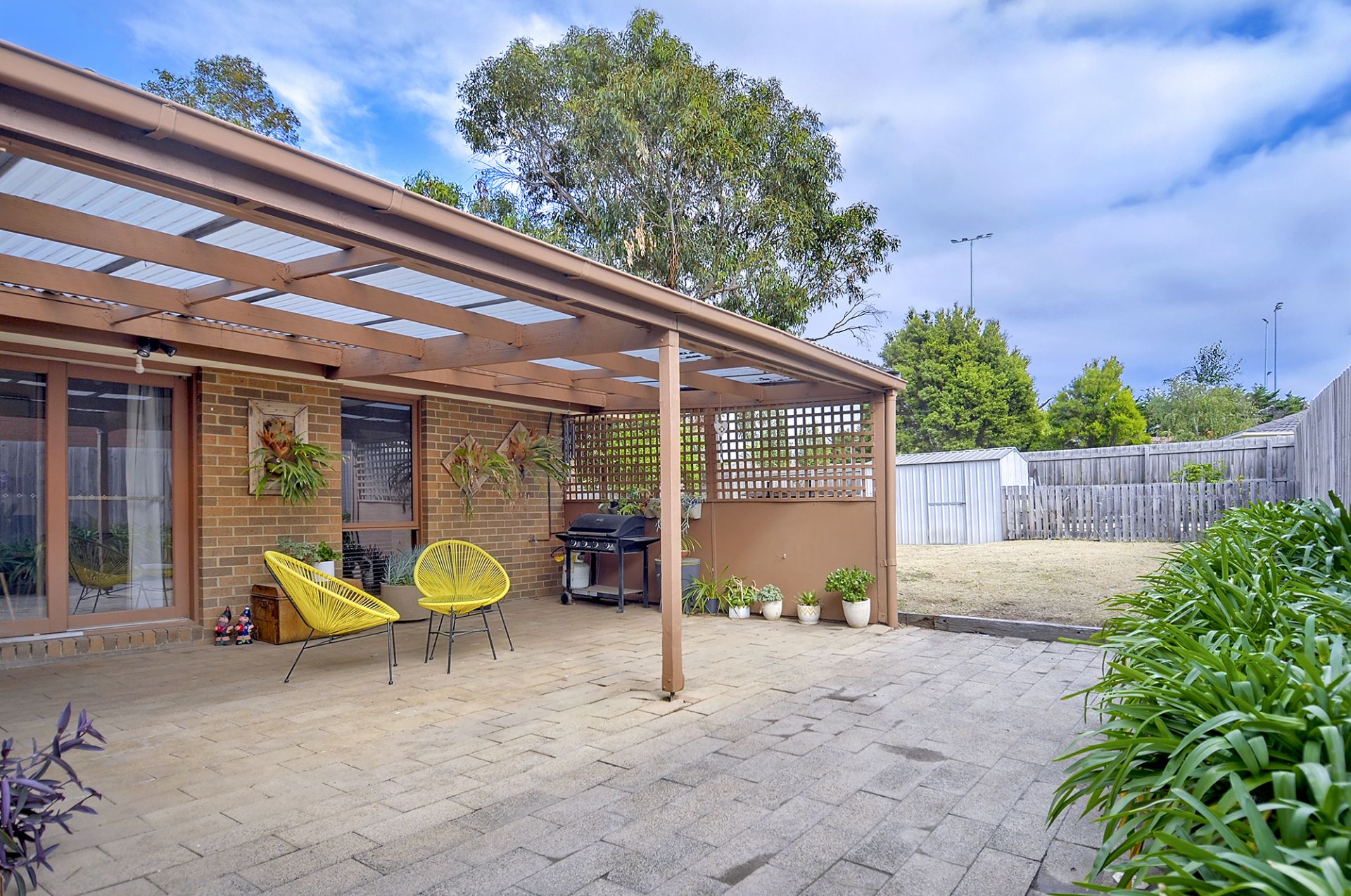 Step outside to the large undercover alfresco entertaining area and huge backyard with garden shed and loads of space for the kids to play.